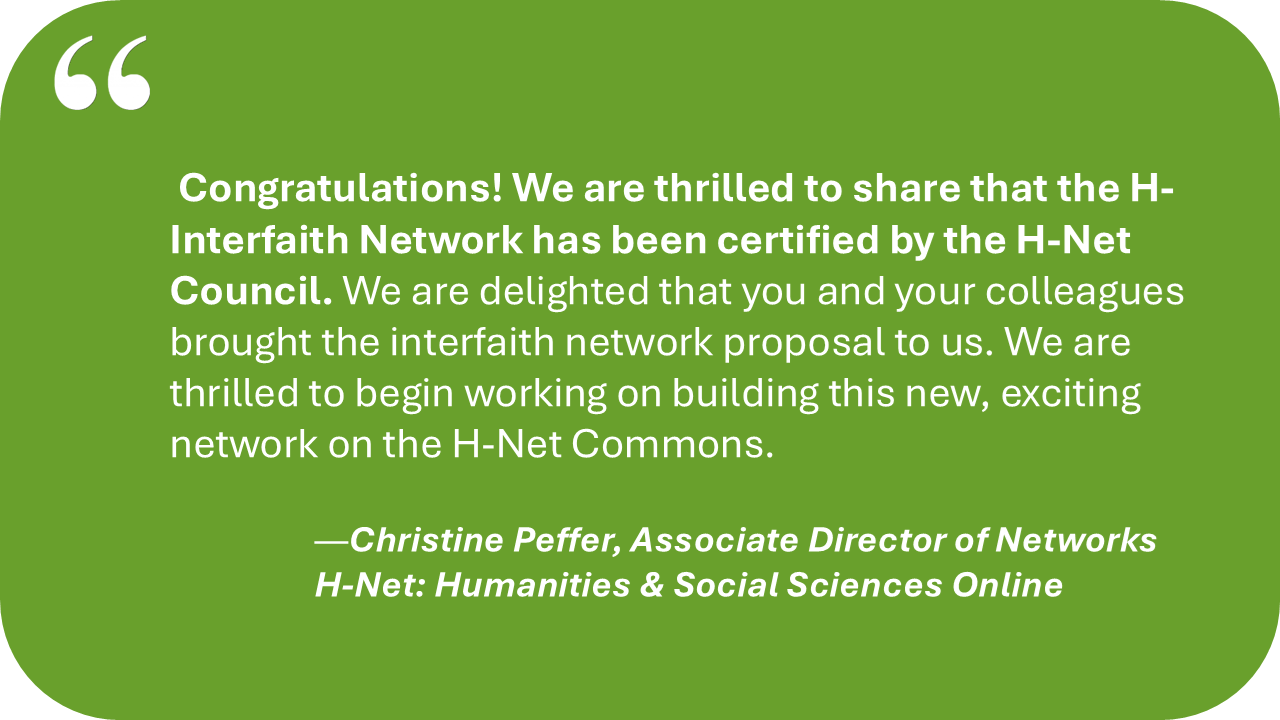By joining the H-Net consortium’s 200+ discipline-specific networks, H-Interfaith fosters interfaith dialogue across the Humanities and Social Sciences and upholds high academic standards. Participants from all faith backgrounds or none are welcome, with multilingual resources and opportunities for cross-disciplinary collaboration not commonly available elsewhere.