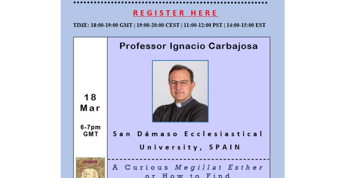 18 March, 2024 We are deeply honoured to welcome Reverend Professor Ignacio Carbajosa, a Professor of … Continue reading A Curious Megillat Esther or How to Find a Needle in a Haystack